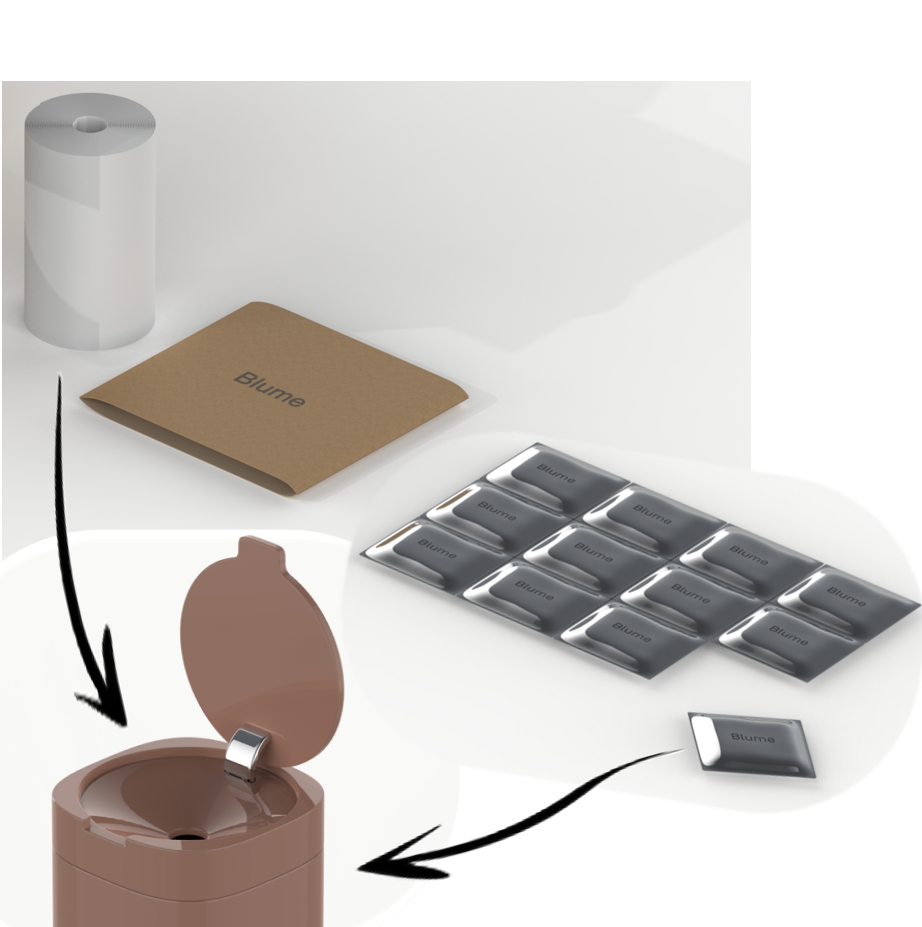 Add your preferred scented "activator" capsule, water, and dry biodegradable wipes to the dispenser.